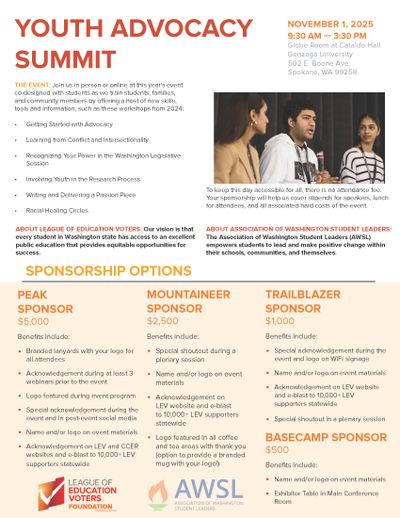 Over the last year we have seen attacks at the local and federal level on public education, economic challenges, and growing disillusionment with our systems. There has never been a more crucial time for young people to come together to learn from and support one another. We want students and community members to leave the event with a deeper understanding of issues facing public education, learn how to navigate and exercise the advocacy ecosystem in Washington state and feel energized to engage in some “good trouble.”